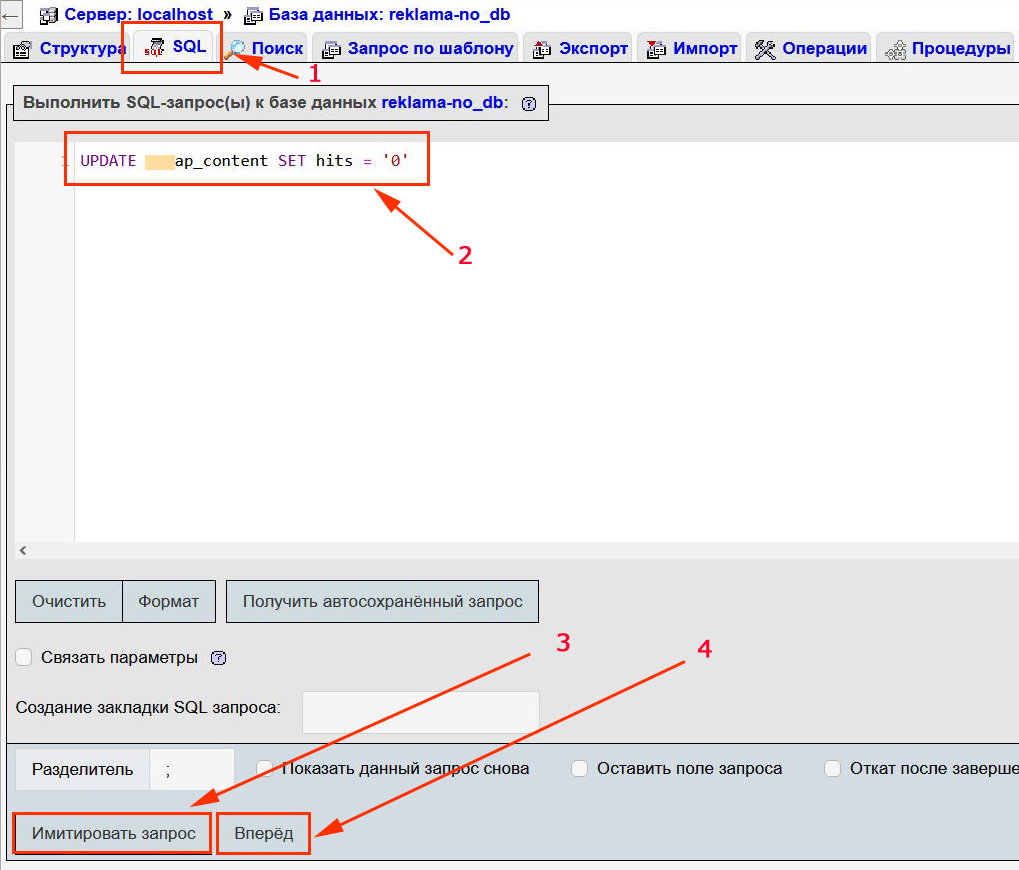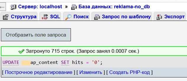 Обнуляем счетчик просмотров Joomla через phpmyadmin